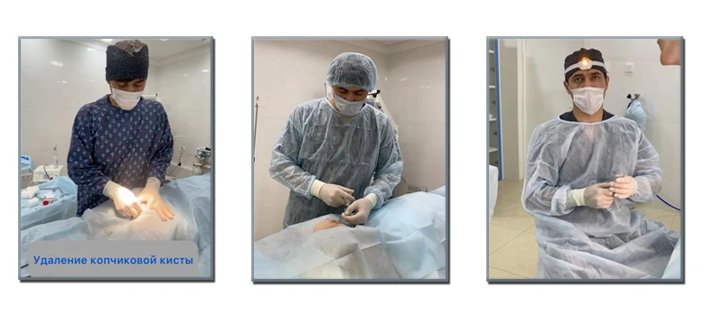 • лечение эпителиального копчикового хода или ЭКХ, абсцессов ЭКХ, эпителиально – копчиковой кисты, то есть весь спектр операций.